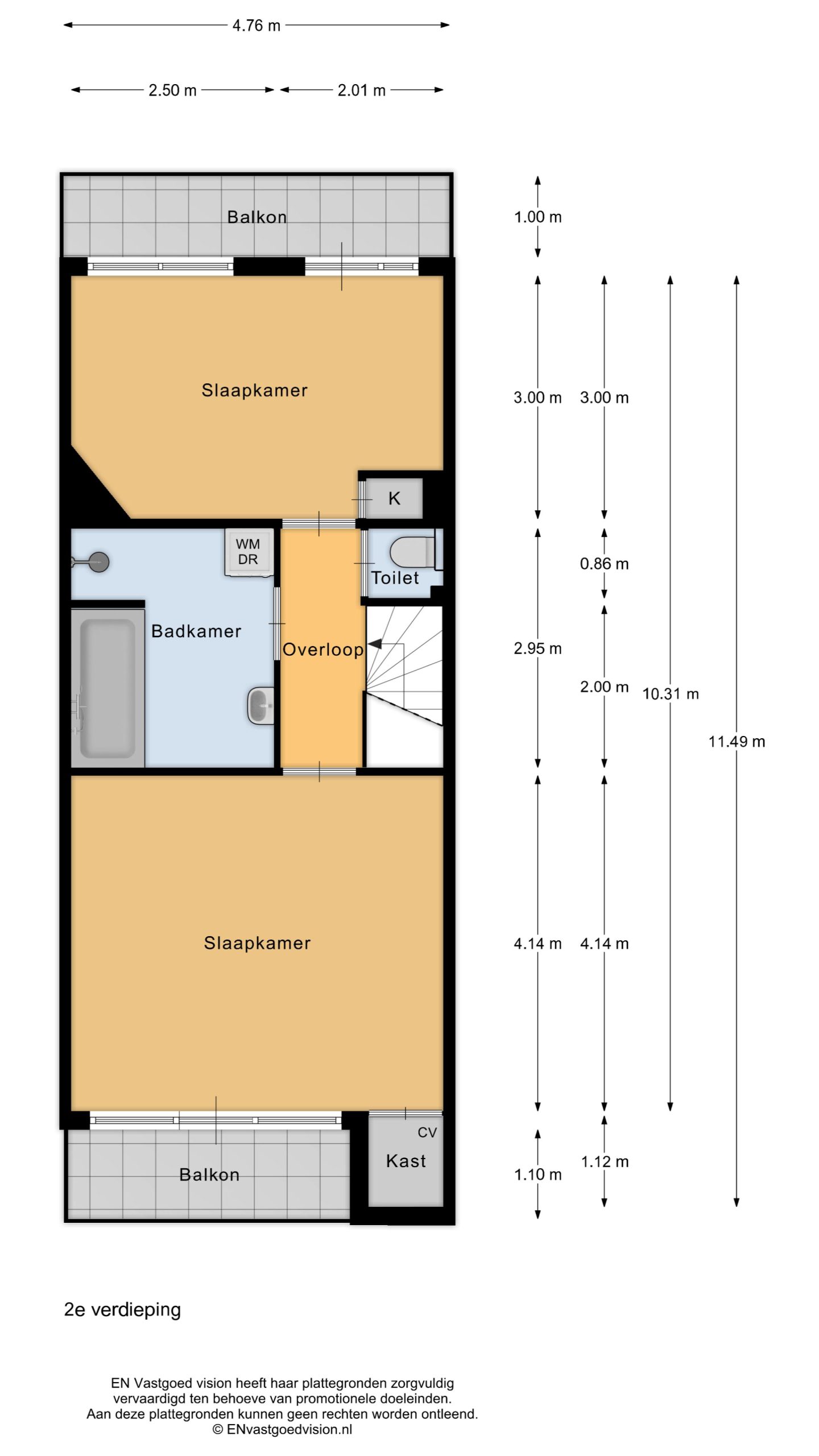 | Tweede verdieping | 2 Bedroom(s). Bathroom: 1 bathroom(s). Gang, Toilet, Balkon. Orientation: Zuid |