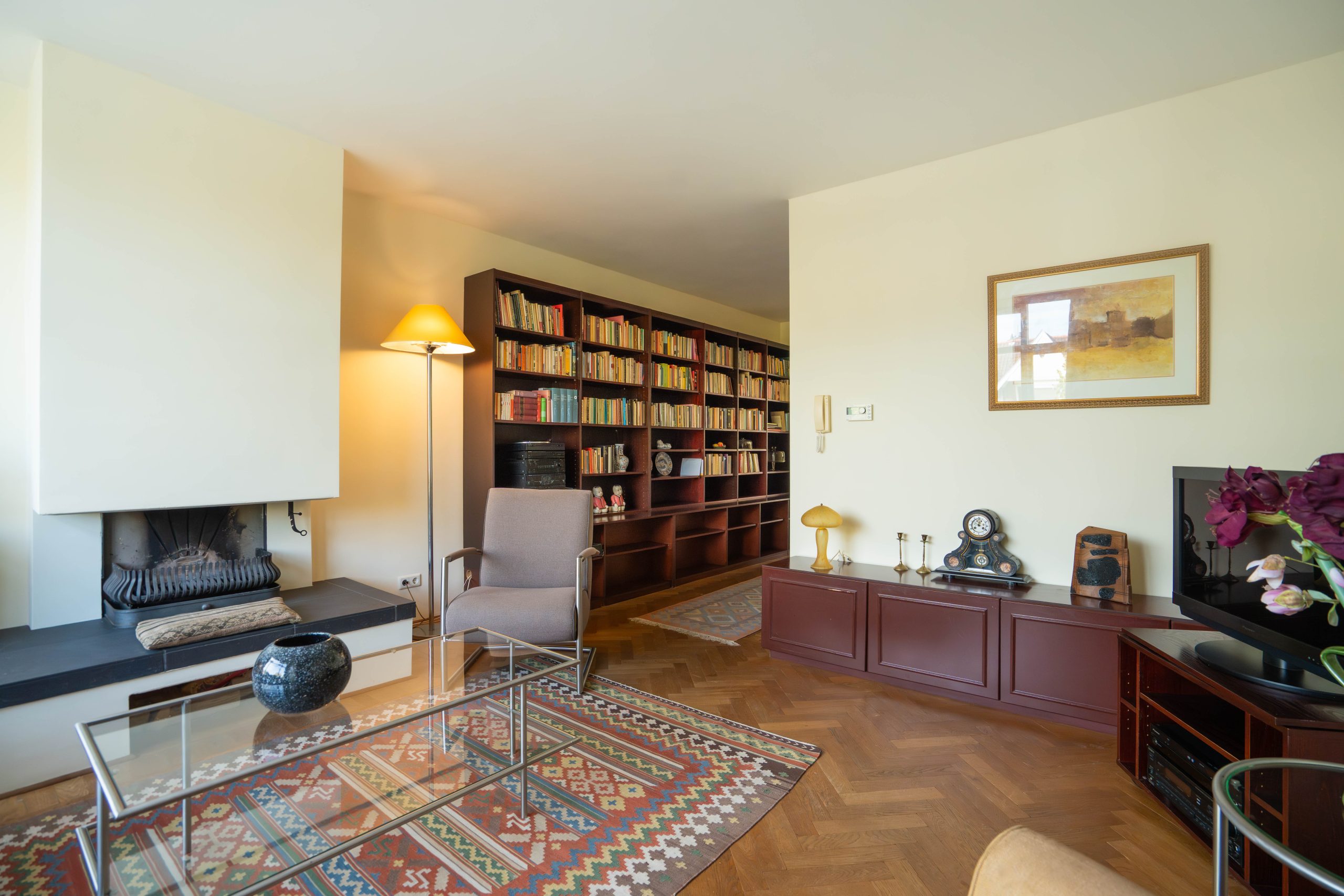 – Spacious living room with fireplace